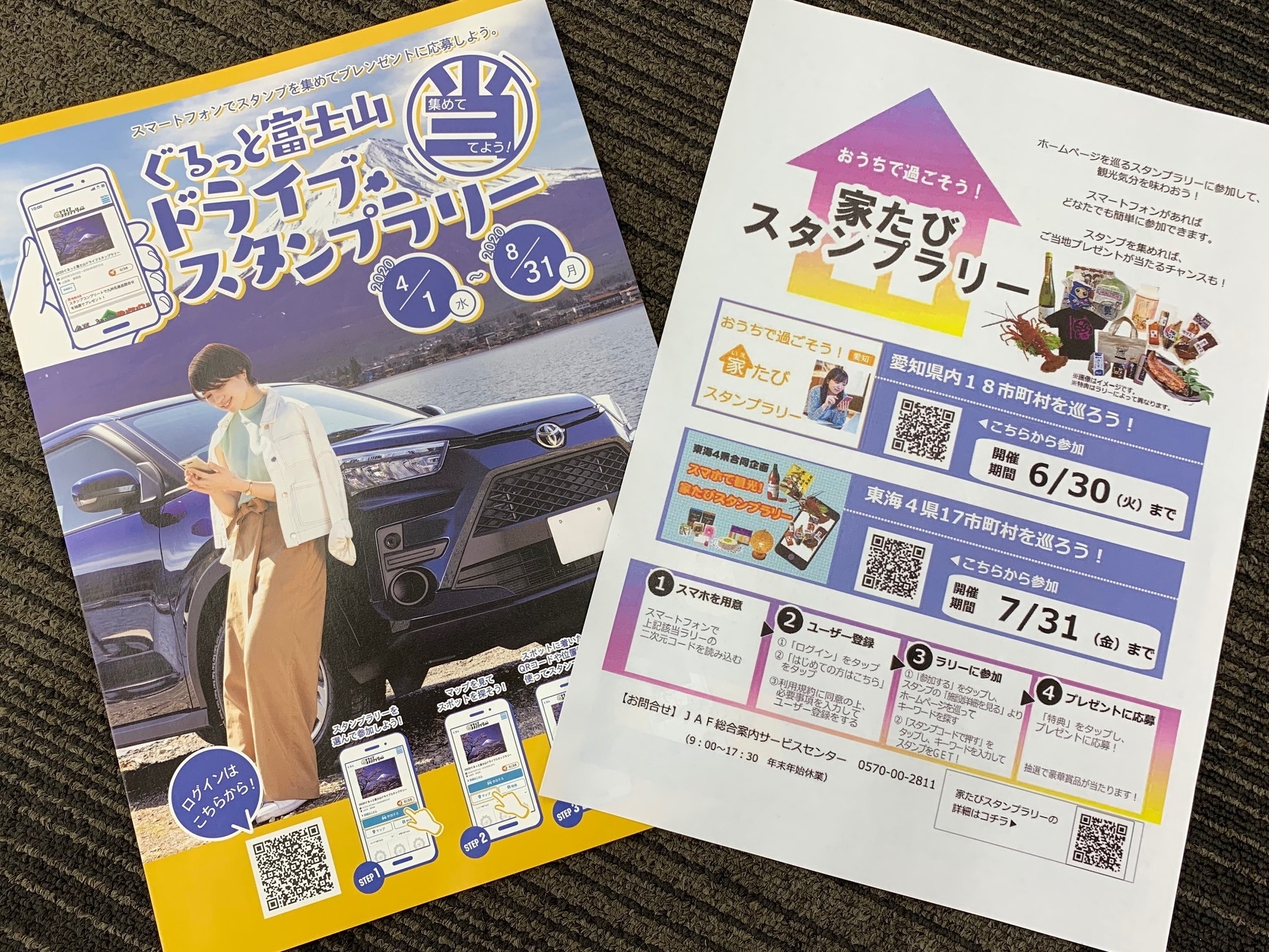 只今、お家にいながら楽しめる「家たびスタンプラリー」と、実際にドライブしながら楽しめる「ぐるっと富士山ドライブスタンプラリー」を開催中です。