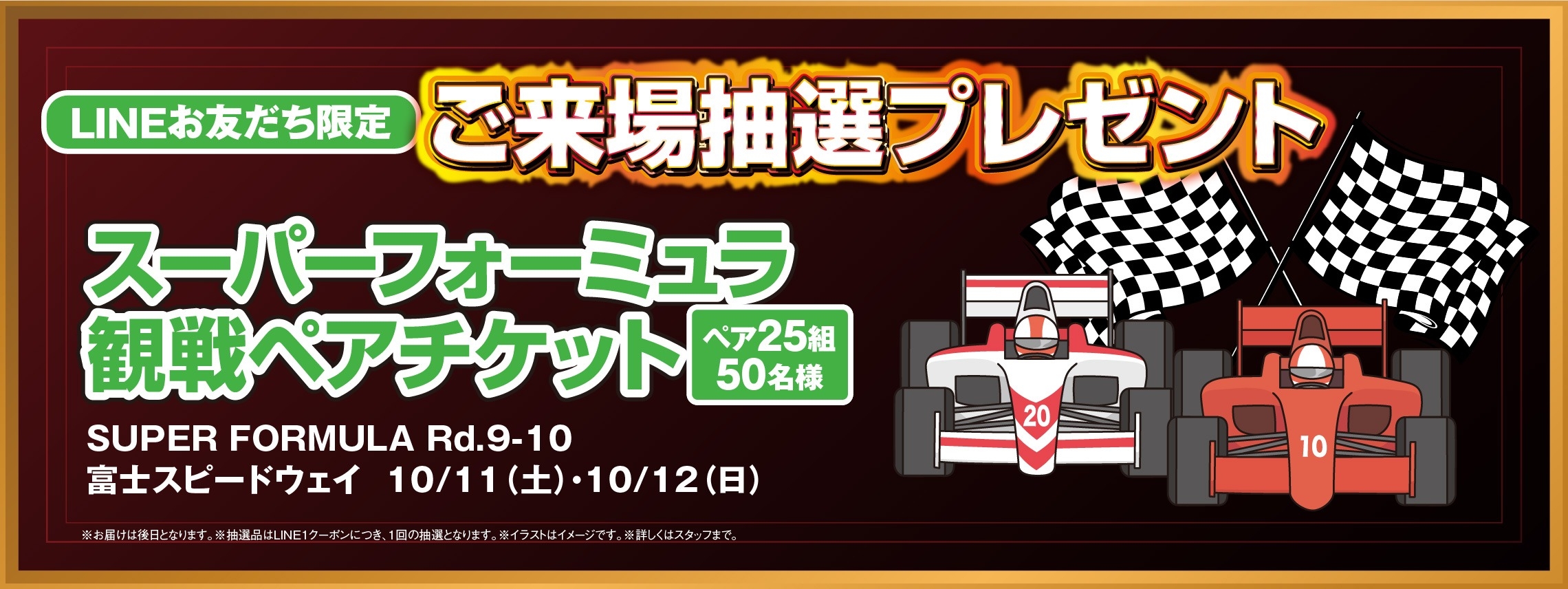 またLINEお友だち限定でスーパーフォーミュラ観戦チケットが当たる