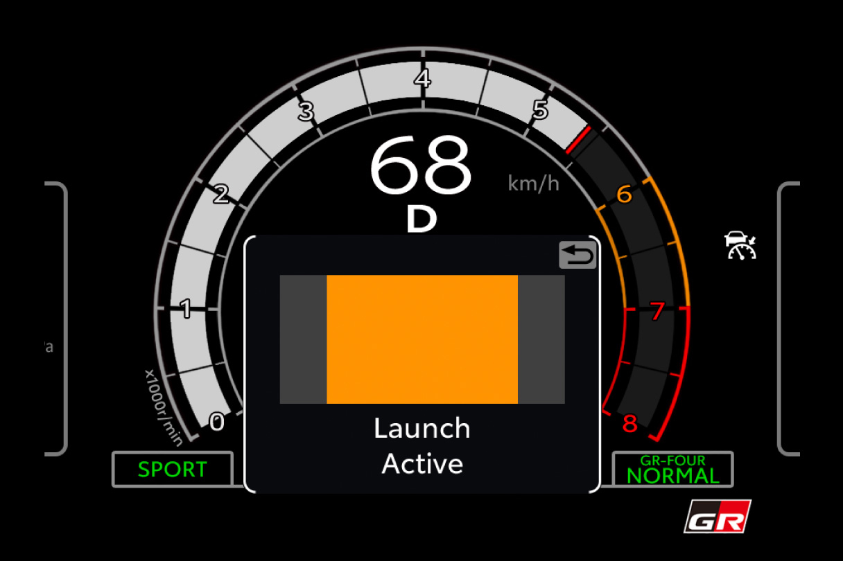 ローンチスタート制御を採用し、車両停止状態からの力強い発進加速を実現。ローンチスタート制御がアクティブの時は、通常のストール発進よりもエンジン回転数が高くなります。