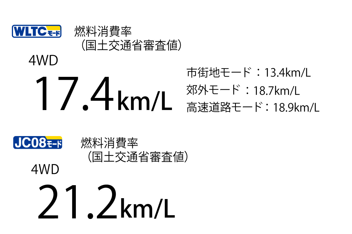 ■燃料消費率は定められた試験条件のもとでの値です。お客様の使用環境(気象、渋滞等)や運転方法(急発進、エアコン使用等)に応じて燃料消費率は異なります。
