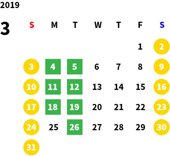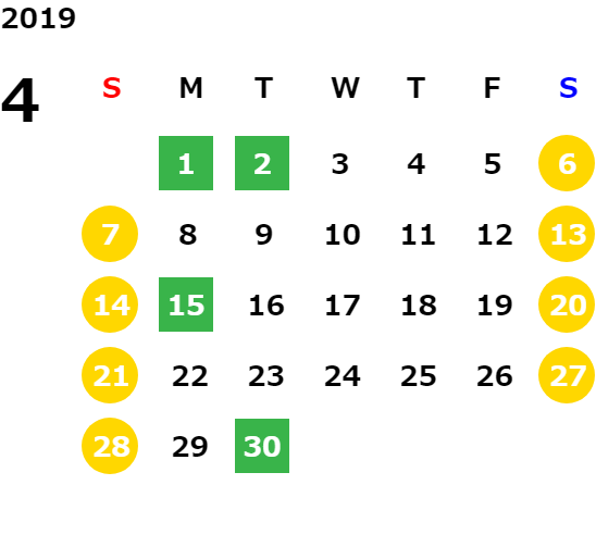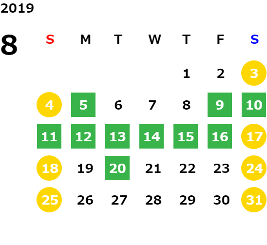 営業日カレンダー