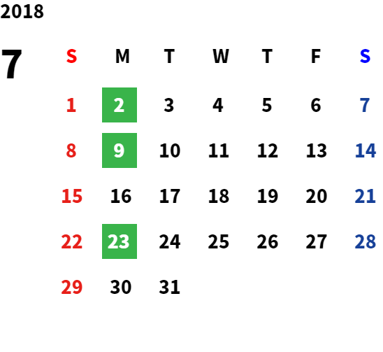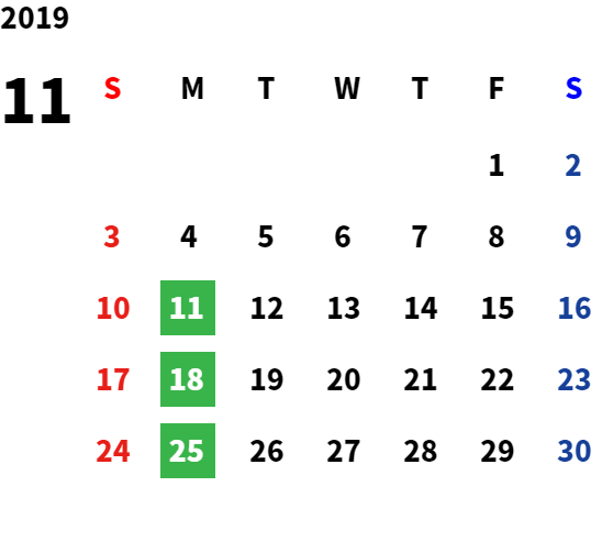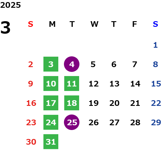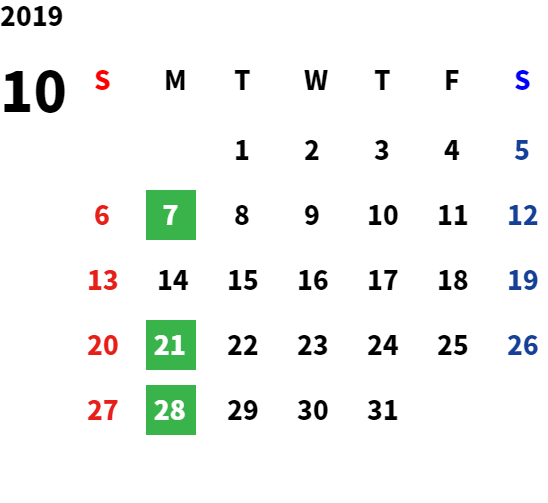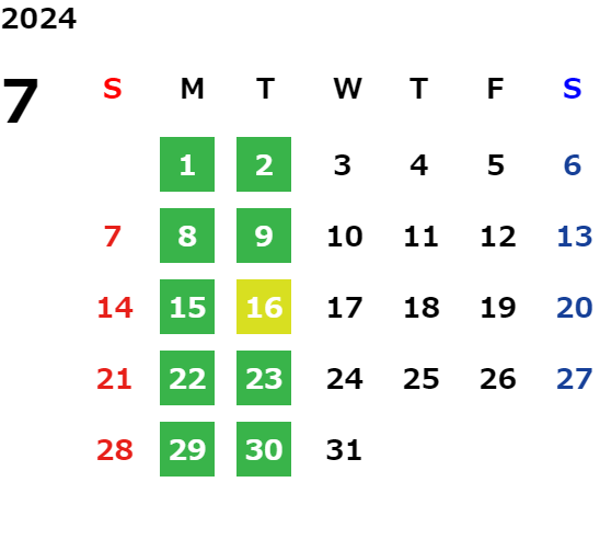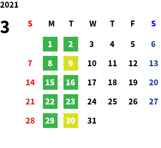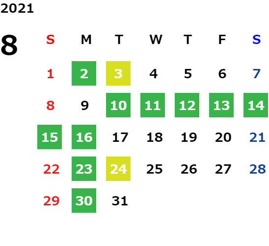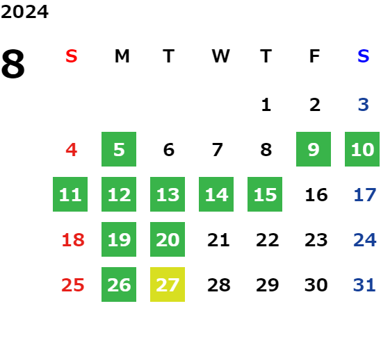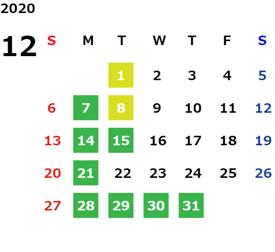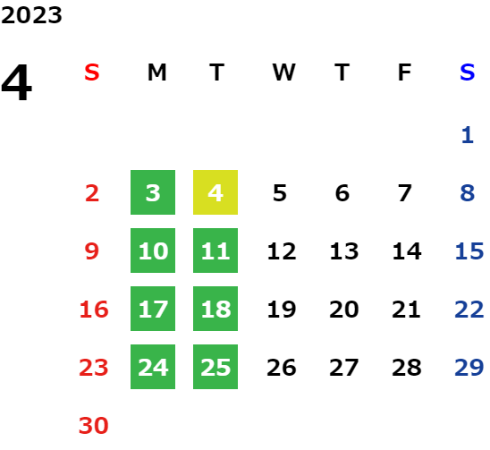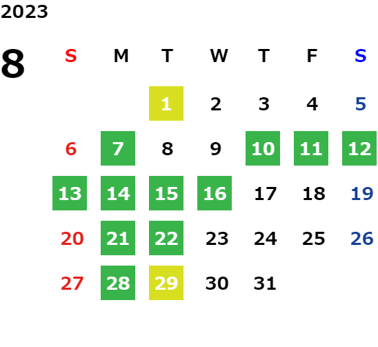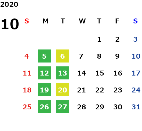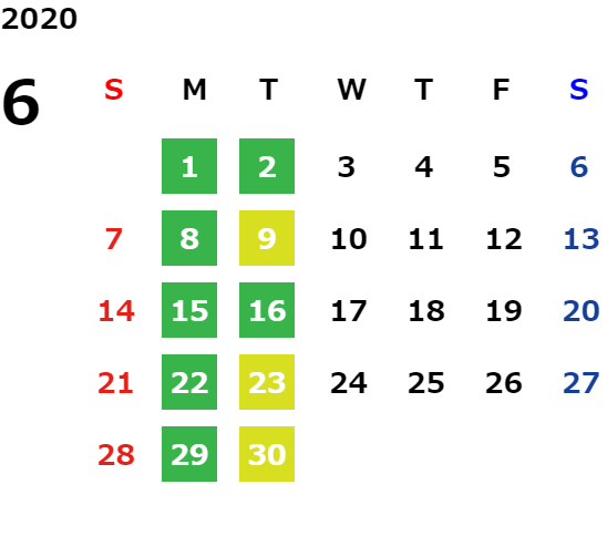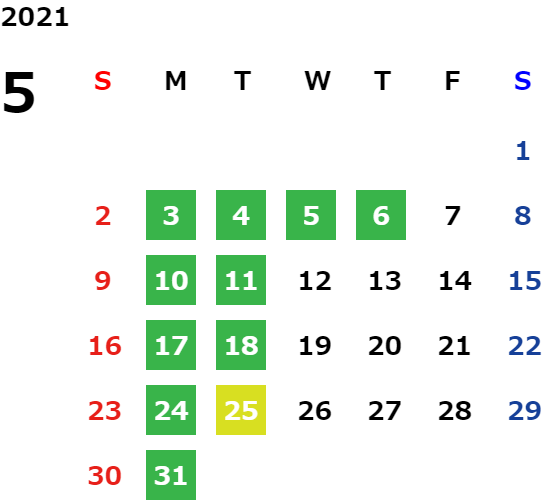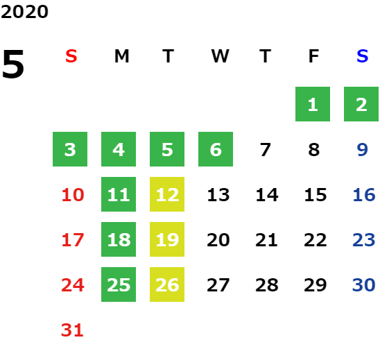 営業日カレンダー